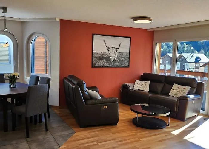 Residence Au Coeur Du Village, di 100 m^2, si trova a circa 6 km dal Rinderhalde e alletta gli ospiti con una jacuzzi e una sauna. Goditi una passeggiata fino ai Bagni termali Alpentherme, situato a breve distanza a piedi da questa struttura.